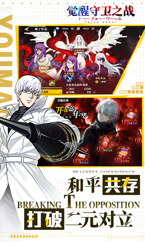 【原动漫 名场面】 全角色剧情在掌间完整重现,1:1 高精度 3D 建模复刻经典名场面:惊心动魄的 20 区突袭、震撼人心的枭战终局、惊天动地的龙战爆发。全景特效逼真还原赫子与库因克的激烈碰撞,金木研蜈蚣赫子的致命绞杀,有马贵将 IXA 光刃的凌厉锋芒,沉浸式体验东京暗黑世界的生存之战! 【快节奏 挖彩蛋】 从安定区静谧后巷到奎库利亚阴森地牢,从月山家奢华宅邸到流岛残酷战场,再到「V」组织戒备森严的总部。每个副本都隐藏着独特彩蛋 —— 古董店地下室的神秘线索、库因克锻造的不传之秘,等你探索。战斗节奏紧张刺激,攻守策略瞬息万变,每一步都可能是生与死的抉择! 【多形态 高颜值】 根据成长经历精心设计皮肤服装,白金木冷峻霸气的战斗装束、董香温婉动人的咖啡店便服、有马贵将英姿挺拔的制服、呗充满神秘感的戏服,暗黑酷飒、温柔治愈、精英飒爽、邪魅神秘等多种风格一网打尽,视觉盛宴不容错过! 【登录送 高倍率】 新服直接开启狂欢模式!登录即送SSS赫者,开局千抽助力,轻松组建强力阵容。无论是喰种军团还是 CCG 小队,任你自由搭配。赫子系统支持无损转换,告别废卡烦恼,随时根据战局调整策略 —— 用速度型角色制霸巷战,以范围型技能压制群体,打造专属于你的东京生存小队! 理解第三种存在,冲破 “V” 组织的阴影,带领街头走向不再有对立的黎明!属于你的共存之路正等待开启!以赫为誓,以刃为盟,即刻启程《觉醒守卫之战》!